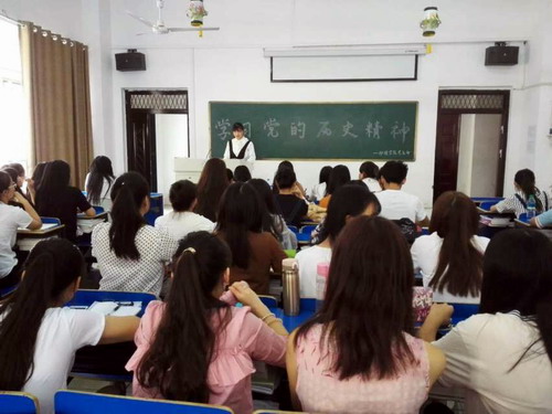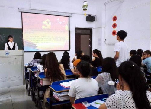 活动伊始,主持人首先以PPT的形式展示了习近平总书记知青岁月历经磨练,从普通农民到村支书,再一步一步稳扎稳打从田间地头锻炼成长走出来的艰苦过程。一帧帧幻灯片让同学们深刻体会到脚踏实地艰苦奋斗的意义,体会到在现今良好的环境中认真学习、学好自身本领的重要性。随后,主持人让同学们就幻灯片内容谈谈学习体会,同学们踊跃发言,纷纷表示要以习近平总书记为榜样,结合自身实际将党的优秀精神发扬光大。