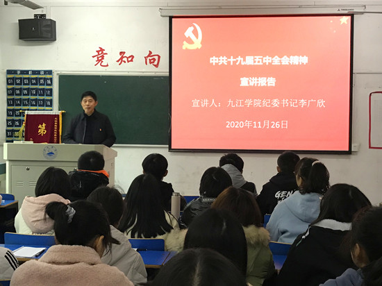 校领导给XCSport联系班级宣讲中共十九届五中全会精神