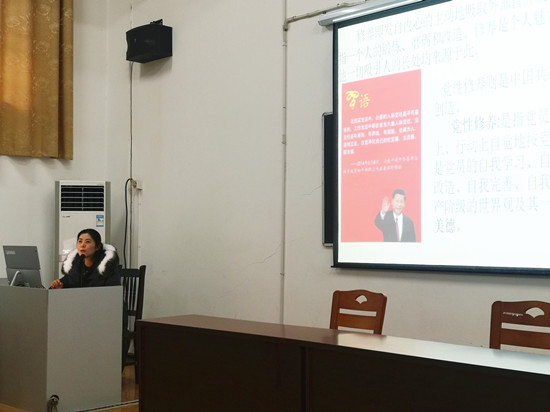 蔡端颖从党性修养的涵义、主要内容、党的历史以及如何提升党性修养的四个方面,结合案例与相关事迹,深入浅出的给大家讲解了党性是什么,我们作为教育工作战线的党员干部应该如何提升党性修养。她提出我们在教书育人的过程中,首先自身要有坚定的理想信念、严格的纪律性,做到言行一致,以身示范。