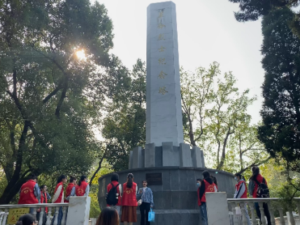 “为什么在九江设立烈士纪念碑?”“九江的革命先烈们有什么英勇事迹?”……纪念碑前,同学们带着好奇与尊敬,一同了解这段红色往事。陈霞同志向大家介绍起了九江的红色基因:九江是革命老区,为革命而牺牲的共产党员和群众达十万之多,无数革命先辈在这块红土地上谱写了不朽的诗篇。