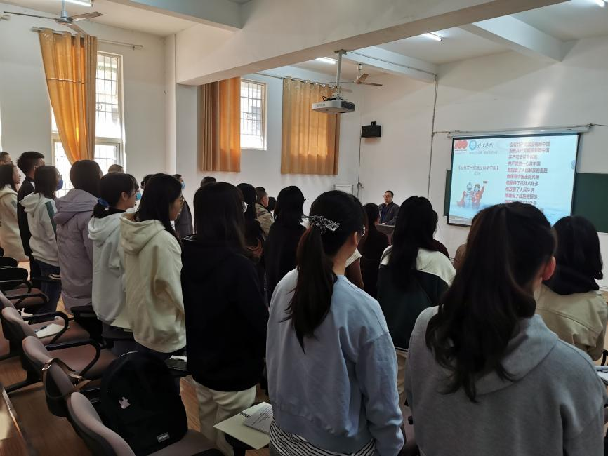 “没有共产党就没有新中国,共产党他辛劳为民族,共产党他一心救中国……”会前,按照公司“唱响红色经典,凝聚奋进力量”活动的部署安排,全体师生挺胸抬头,精神振作,高声合唱《没有共产党就没有新中国》。