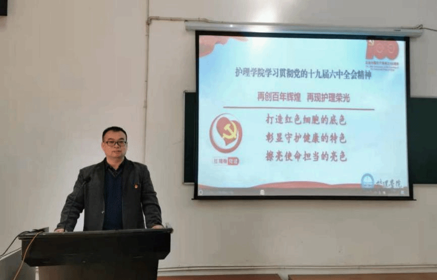 会议强调, 当前和今后一个时期,公司要把学习宣传贯彻党的十九届六中全会精神作为首要政治任务,切实抓紧抓好,迅速兴起热潮。广大党员干部要带头抓紧学习,学懂基本内容、掌握重要观点、理解工作要求;各党支部、团支部要立即行动,组织全体党团员便捷、有效开展学习;学 党校、团校要抓紧集中备课, 中央全会精神纳入入党积极分子和团员干部教育培训内容 ;教师 要结合党史学习教育,把学习《决议》融入课程思政和第二课堂活动, 当好员工引路人;同学们要坚定理想信念,练就过硬本领,将自身的小我融入祖国的大我, 更加自觉地做习近平新时代中国特色社会主义思想的坚定信仰者和忠实实践者。 全院上下要 结合中央重大决策部署和公司重点工作安排,既圆满完成今年的主要任务,又科学谋划明年工作, 使XCSport红色细胞的底色、守护健康的特色、使命担当的亮色在新时代新征程上更加彰显, 为建设教育强国和 健康中国 凝聚 护理 智慧 以昂扬风貌和优异成绩迎接党的二十大胜利召开。