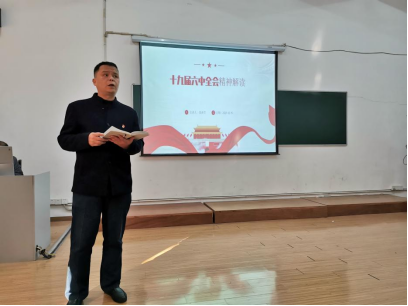 段善君全面介绍了党的十九届六中全会的基本情况和主要内容,围绕学习贯彻习近平总书记在党的十九届六中全会上的重要讲话和全会审议通过的《中共中央关于党的百年奋斗重大成就和历史经验的决议》,从六个方面对党的十九届六中全会精神进行了系统宣讲和深入阐释,并结合省第十五次党代会精神、市第十二次党代会精神和新时代高等教育发展新要求,阐释了高校如何高举伟大旗帜,走好新时代长征奋进之路。