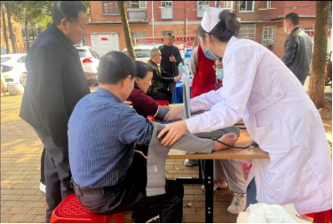 党员志愿者们来到活动现场,迅速搭设血压测量临时点热情地为前来的居民开展健康咨询、测血压、测血糖、发放健康知识手册等义诊活动。为了方便行动不便的高龄老人,志愿者还特派一支小分队为重点人员上门进行血压测量,为老人提供专业化的暖心服务通过与社区居民零距离面对面交流,细心地为居民讲解慢病相关知识,针对每位居民的情况,提供合理的用药建议和饮食指导。