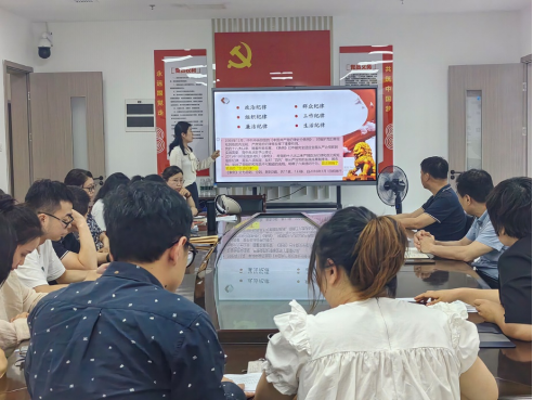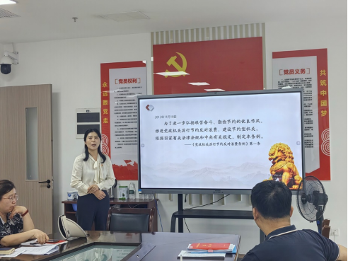 为扎实推进党纪学习教育,提高教师党员的党性修养和纪律意识,5月29日,经理蔡端颖为教工党支部党员上党纪学习教育专题党课。