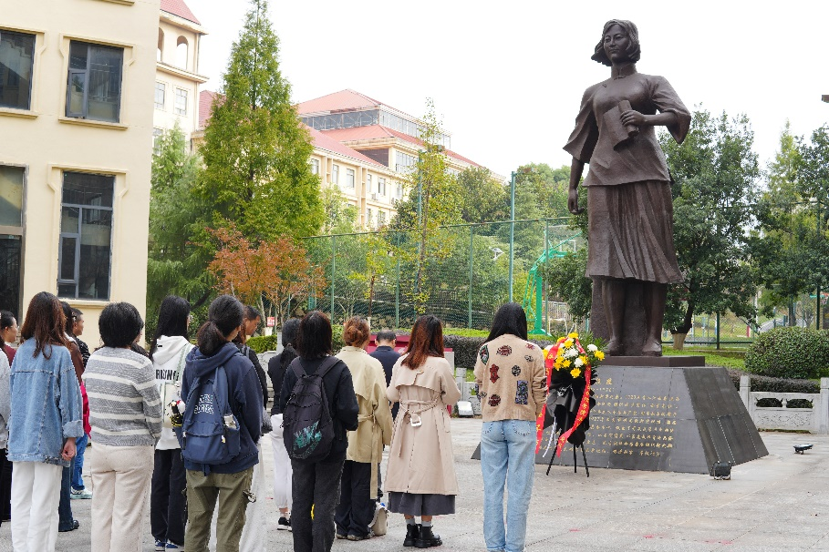 参观完纪念馆后,师生一行来到王经燕同志的铜像前,全体人员整齐列队,低头默哀,并敬献花篮,无声地缅怀这位优秀的共产党员。党委书记张友木带领师生党员庄严宣誓,重温入党誓词。全体师生神情严肃,字句铿锵,发自心底的自豪溢于言表,将对党的热爱体现在一言一行中。仪式由党委副书记龚英军主持。