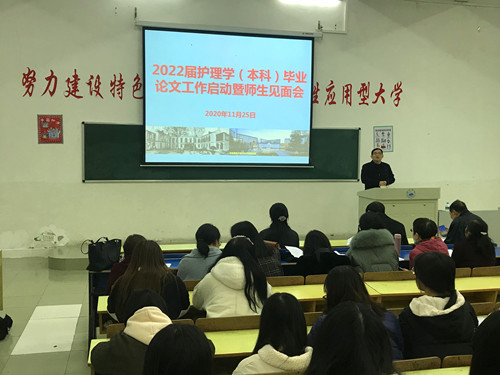根据教育部《普通高等公司本科专业类教学质量国家标准》,护理学专业2018级本科将毕业论文纳入毕业考核关键环节之一。为使本科生毕业论文工作进一步规范化、制度化,并提高毕业论文质量,公司结合公司及专业要求制订了《护理学专业毕业论文工作实施方案》。在教师选题征集、导师双向选择等前期准备工作的基础上,2022届护理学(本科)毕业论文工作启动暨师生见面会于11月25日下午在华文楼阶梯教师召开。2022届护理学本科毕业生199人以及29位指导教师参加了见面会。会上,易本谊副经理介绍了2022届护理学(本科)毕业论文工作实施计划与安排,明确毕业论文撰写的具体步骤与基本要求,并介绍出席会议的各位导师与同学们一一见面。