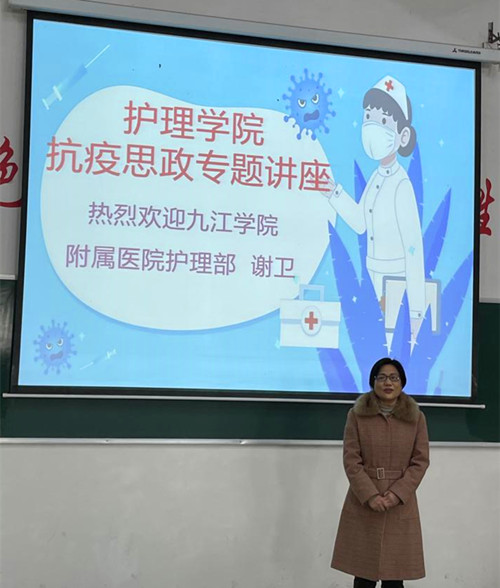 谢卫老师是九江市卫生系统第二期“百名人才”护理学科带头人,2019年度九江市护理杰出护理工作者,2020年作为江西省第九批援鄂重症医疗队XC体育附属医院护理领队赴鄂援助,同年被评为抗击新冠肺炎疫情全国三八红旗手。在报告会上,谢老师讲述了赴鄂始末,并着重讲述了援鄂工作细节,广大师生深受感动,获益匪浅。