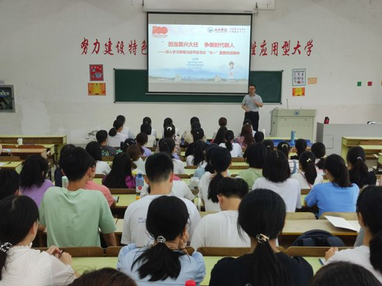 闫来英从河南洪灾、奥运赛场、神舟巡天中的青春身影入手深入阐述了习近平总书记“七一”重要讲话精神的重大意义、主要内容和丰富内涵。教育引导生把灾难当教材,与祖国共成长把经历当财富,与时代同奋进把梦想当动力,与奋斗常相随。号召青年老员工在新征程中担当复兴大任,争做时代新人,用实际行动践行“请党放心,强国有我”的青春誓言。
