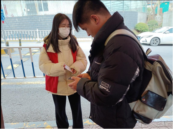 志愿者们统一着装并规范佩戴好口罩到达活动地点进行接班。活动中,志愿者们在值班老师的带领下分工合作,对每一位返校同学进行体温检测,有序查验返校同学的赣通码、行程码、核验身份证、员工证或校园卡,省外同学返校还进行48小时内核酸检测阴性证明的查验并引导其至校核酸检测点进行返校核酸检测。