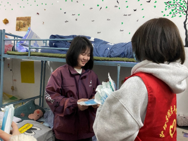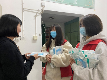 活动中,团学干部代表给各个寝室同学们分发了口罩及消杀用品,引导同学们们在生活、学习中加强自身防护。员工干部们以带头表率作用让同学们们意识到了疫情下佩戴口罩的重要性,增强了同学们校园“守护人”的意识,从自身做起,共筑疫情防控线。