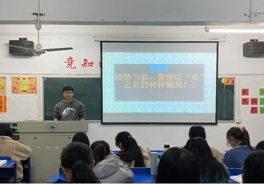 为了进一步加强疫情防控期间防范治理电信网络诈骗教育工作,增强同学们的安全防范意识,3月27日晚,公司开展以“疫情当前,警惕以‘疫’之名的种种骗局”为主题的班会活动。