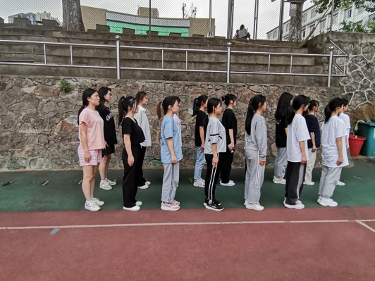 夕阳欲坠,在培训负责人的带领下,19位助导预备役在操场上挥洒汗水,释放青春。跑步队伍井然有序,同学们迈着整齐的步伐,虽然略微感到疲惫,但也坚持前进。跑操结束后,负责人发号施令进行军训操练,训练内容包括立正、稍息、跨立、停止间转法等。同学们毫不松懈,仔细听从负责人下达的任务,认真完成每一个动作,规范了动作的同时锻炼了耐力。