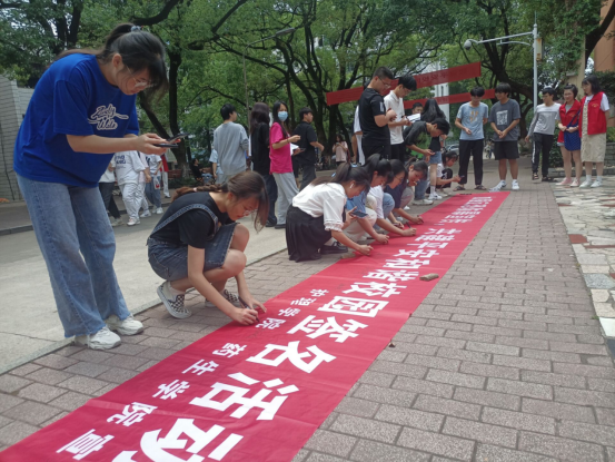 最后志愿者和同学们在活动横幅上签署姓名以示我们坚持反恐防暴,同护校园安全的决心。本次宣传活动在给同学们普及反恐防暴相关知识,促使其养成良好的自我防范和保护意识的同时,也使防暴活动主题深入人心。