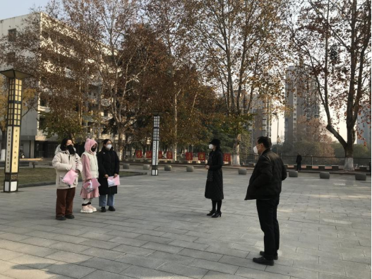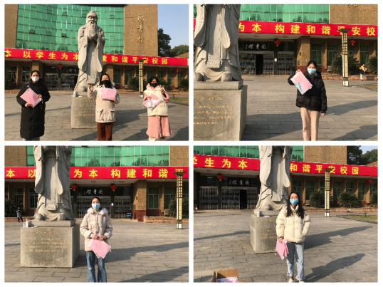 XCSport经理蔡端颖、党委书记郭青、党委副书记龚英军为考研学子送上“暖心福袋”。