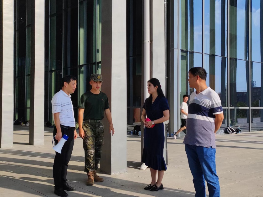 公司党委书记郭青、经理蔡端颖、副书记龚英军多次前来看望慰问。郭青对同学们在训练中展现的精神风貌和取得的进步给予了充分肯定,勉励同学们进一步严格要求自己,遵守军训规章制度,磨炼自身意志,争做新时代全面发展好青年。蔡端颖对新生们的表现给予高度赞扬,激励同学们以饱满的热情和敢于吃苦的精神全身心的投入到训练当中,团结友爱,展现使命担当,争做新时代有斗志的新青年。