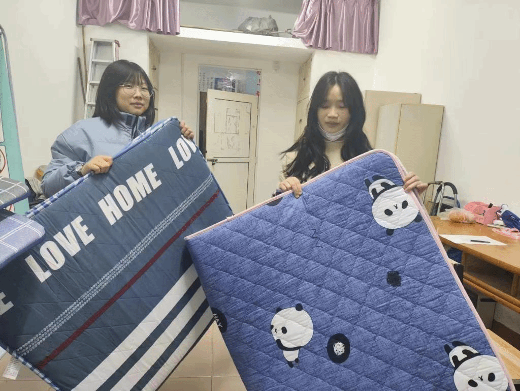 丝丝关爱情,拳拳育人心。辅导员们深入宿舍将暖心床垫送到同学们手中,并叮嘱大家最近天气变冷,流感病毒进入高发期,一定注意防寒保暖。鼓励大家奋发向上,心怀感恩。并深情寄语,希望同学们做积极向上、自信昂扬、豁达开朗的奋进者,做知恩报恩、传递温暖、提高本领的践行者;做党和政府、公司资助政策的宣传者。