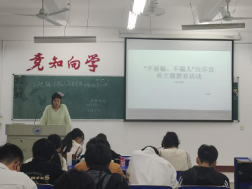活动上,主讲人讲述诈骗的案例,进一步列举典型诈骗手段、分享个人经验,结合防诈宣传视频,积极营造全民反诈的课堂氛围。同时要求同学们要明理善思,签订《不参与电信网络诈骗承诺书》,认真吸取经验教训,以最大限度保障自己的人身财产安全。通过切实有效的反诈教育,反诈知识入脑入心,同学们对不法分子的诈骗手段有了更深程度的了解。