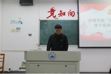 “我们是五月的花海,用青春拥抱时代……”在学员们嘹亮的歌声中,“红细胞”青马工程老员工骨干培训开班仪式正式拉开帷幕。李帅宣读了青马班成员名单,对同学们表示祝贺,为青马班赋能。胥杜鹃肯定了培训班学员饱满的精神状态和认真的参学态度,介绍了本次培训班的教学计划及纪律要求,阐明培训班内容丰富,分为理论学习和实践锻炼,并殷切寄语,期待学员能够成就更优秀的自己,严格按照实践安排,认真学,刻苦练。随后,老师们为青马班授旗,青马班学员代表A2311班李维同学代表培训班学员发言。李维表示将坚定信念,志存高远,不断提升自我,服务全体师生,切实发挥好员工骨干的先锋作用,努力通过“红细胞”老员工骨干培训班成为一批政治素养扎实、理论学习全面、实践锻炼深入、素质能力突出的青年马克思主义者。