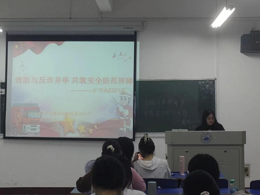 主题教育强意识,多措并举保安全。此次主题班会增强了护理学子消防安全意识,电信诈骗安全教育和防范意识的培养。希望各班同学以更高的风险意识、责任意识、大局意识,提高自我保护能力,共同营造良好、和谐、稳定的校园安全环境。