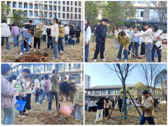 龚英军首先致辞,希望同学们以石美玉先生的精神为指引,在临床实习中践行“救死扶伤、无私奉献”的医学精神,并和同学们一起加入植树队伍,鼓励大家铆足劲,撸起袖子加油干,让小树苗扎稳根、喝饱水。随后,同学们分组协作,挥锹挖坑、扶苗培土、提水浇灌,亲手种下了象征希望与生命的树苗。完成树苗的栽种,大家合影留念,记录难忘时刻。
