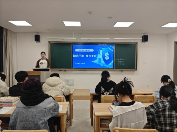班会开始,主持人从电信网络诈骗的基本概念入手,详细阐述了识别和防范诈骗的方法,深入剖析常见诈骗类型,如网络兼职、刷单、购买游戏账号诈骗等,还结合身边真实案例,让同学们对诈骗手段有了更直观的认识。