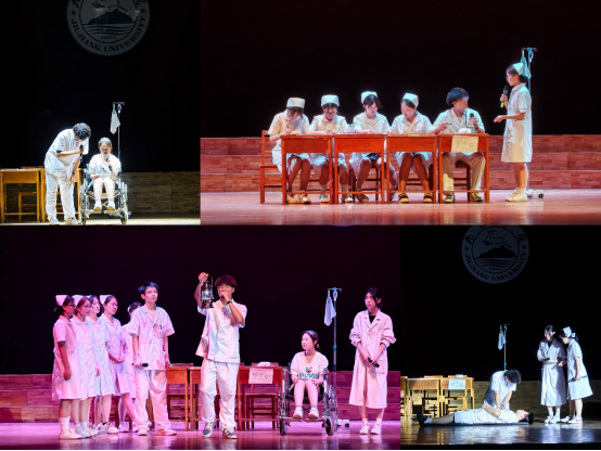 比赛现场,XCSport带来的《提灯者》以护理工作者的职业视角为主线,生动展现了医护人员在高压工作、医患沟通中的内心成长历程。演员们通过细腻的肢体语言与情感表达,精准刻画了角色从目睹患者痛苦的共情、遭遇误解的无奈,到通过专业实践与自我调节实现心理突破的转变。舞台上,柔和的灯光与舒缓的音效交织,配合逼真的医疗场景布置,让观众沉浸式感受护理群体的坚韧内心与人文情怀。