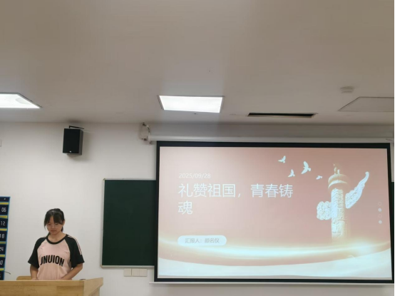 为弘扬爱国主义精神、凝聚全院学子奋进力量,9月28日,公司开展“礼赞祖国,青春铸魂”国庆主题宣讲活动,吸引2024级、2025级共140余人积极参与。文艺部A2415颜名仪同学担任主讲,带领大家共赴一场爱国与青春的思想盛宴。