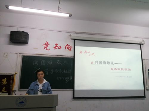 主持人首先向同学们介绍了五星红旗诞生的历史背景及其颜色与图案的象征意义,让同学们进一步了解了五星红旗背后蕴藏的深刻含义。随后,主持人向同学们阐述了爱国主义的具体含义,介绍了牢固树立“四个意识”、坚定“四个自信”、坚决做到“两个维护”的含义。同学们纷纷表示:通过回顾五星红旗的深刻含义以及爱国主义伟大精神,心中的爱国之情与民族自豪感愈发浓烈。活动最后,同学们积极朗读诗歌《赞美祖国》,积极表达自己对祖国的美好祝愿。A1912班的陈霞同学表示:“有国才有家,家是最小国,国是千万家,我今生生为华夏儿女,何其有幸,此生不悔入华夏,来世还做华夏人。”而A1912的方瑶同学则道:“祝福祖国的明天,天更蓝山更绿水更清,经济更繁荣人民更幸福国力更强盛。”