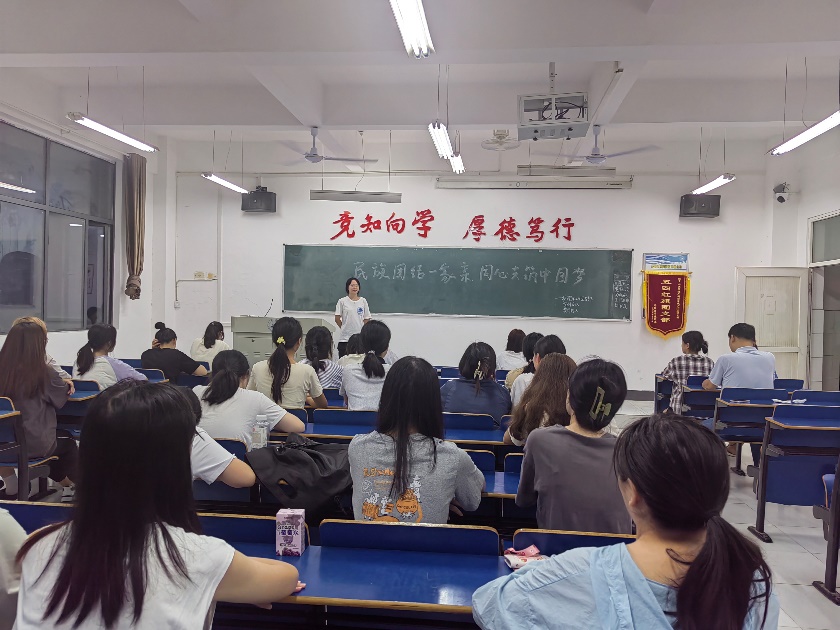 活动上,主讲人循序渐进,通过回顾习近平总书记重要讲话精神,带领同学们了解国家的民族政策。以演讲的形式,向同学们描述了少数民族的风俗和饮食文化,让同学们对各民族生活方式有了更加深刻的认识。各班主讲人怀着“民族团结一家亲”的态度,让少数民族文化在讲台上各放异彩。文化的瑰丽带来思想上的碰撞,让同学们在深学细悟中领略中华民族独特的精神追求。整个过程,同学们聚精会神,自发鼓掌,气氛和谐热烈。