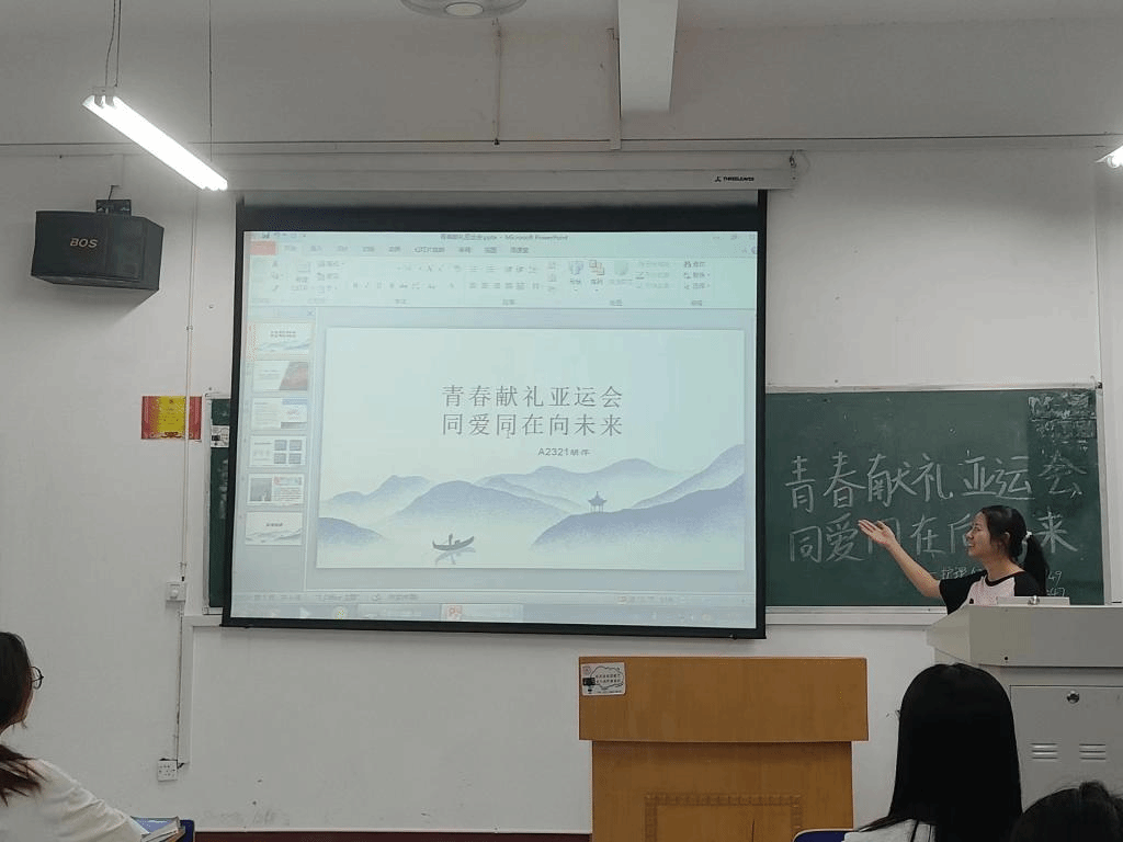 活动上,各班主讲人结合PPT,向同学呈现杭州亚运会的中国元素以及运动员们的英姿飒爽,带同学们领略杭州亚运会的风采。采用图文并茂的形式,展示了一帧帧充满中华韵味的图片,如取自钱塘江潮的“潮涌”会徽、融入良渚玉综元素的“薪火”等等,让同学更好的了解杭州亚运会,更好将人类命运共同体意识深入脑海,发扬亚运精神。活动中,同学们全神贯注,纪律良好,气氛活跃。