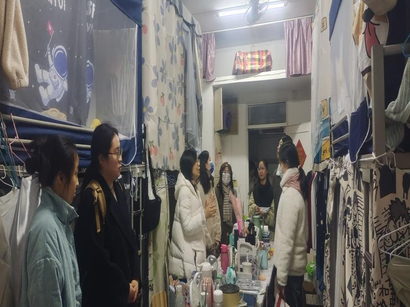 初审后,所有辅导员检查寝室文化节的开展情况,进行复审。他们深入到每一间宿舍,重点询问新生的入住状况,关心他们的生活点滴,加强新生的归属感,听取员工的想法和意见,鼓励同学们尽快适应校园生活;每到一间宿舍都着重强调要正确用电、安全用电、严格防范诈骗等安全问题。走访看望的同时,为保障员工校园生活的安全。老师们对宿舍门禁安全、员工寝室环境等进行仔细的了解,既让同学们感受到了人文关怀,又对安全工作提出了更高的要求。