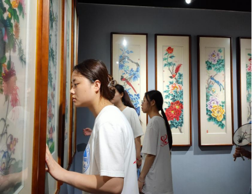 “红细胞”们展现出良好的精神面貌,带着满满的求知欲和探索欲到达瑞昌剪纸博物馆,映入眼帘的是经典的徽派建筑——白墙黛瓦马头墙,成员们兴趣高涨,心情激动,踏入非遗文化的圣地。讲解员从“精工溯源”“以梦荟艺”“文脉传承”“致敬瑞昌手艺人”“又见绝艺”“剪纸殿堂”这六个文化主题展现瑞昌的剪纸历史足迹和发展传承情况。“红细胞”细细观摩欣赏剪纸作品,了解到剪纸有去线留面的阴刻、去面留线的阳刻,与雕刻技艺存在异曲同工之妙。“撕、剪、刻、灼”是剪纸的四种方式,讲解老师提及无论哪种方式都需要师傅用巧劲才能把作品完美的展现。