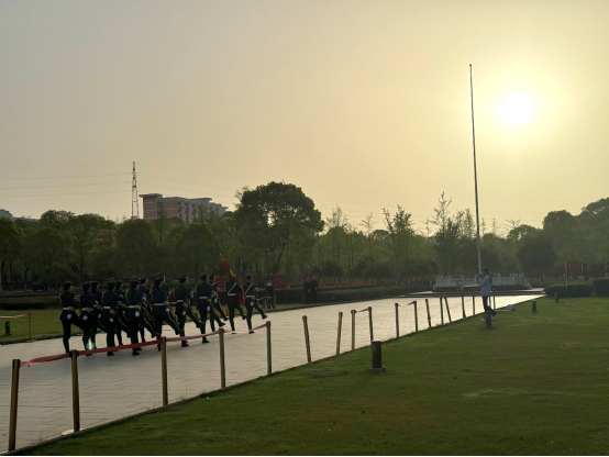 7点整,升旗仪式正式开始。英姿飒爽的国旗护卫队迈着整齐划一、铿锵有力的步伐,护卫着鲜艳的五星红旗,昂首挺胸地走向升旗台。他们身姿挺拔,眼神坚定,彰显着新时代青年的蓬勃朝气与昂扬斗志。