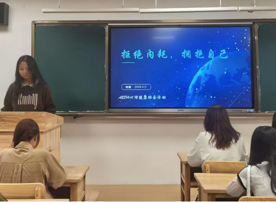 活动开始,主持人播放了一段精心挑选的心理健康科普短视频。视频用温暖的画面、通俗的讲解,展现了心理健康的重要性和常见心理问题。同学们看到熟悉的场景,纷纷产生共鸣。互动环节,大家踊跃分享调节情绪、应对压力的经验。有人通过长跑释放压力找回自信,有人借助绘画、写日记疏导情绪。