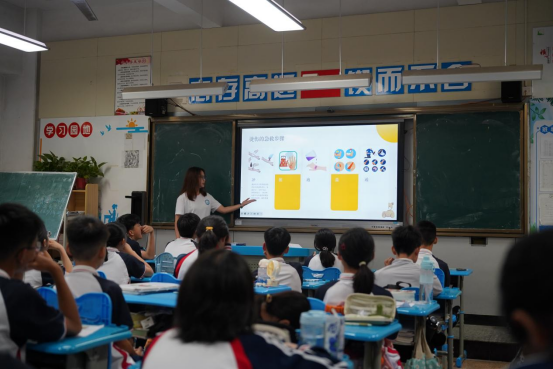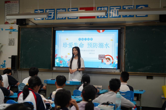 “当‘zhuang’和‘zuang’相遇,谁才是正确打开方式?”队员郑阳灿站在PPT前,结合自身南北方言差异趣味经历为同学们亲身示范。“读对的同学可以获得我们准备的精美小奖品!”同学们的小手瞬间举起。防溺水环节,邝晓雨播放新闻视频后圈出“盲目下水施救”警示框,同学们争相回答,现场气氛热烈非凡。邝晓雨对每一个回答都给予了细致的点评和补充,结合“中小员工防溺水‘六不’原则”,为孩子们撑起生命安全的保护伞。何婉婷用PPT动态分解图演示海姆立克急救法,确保每一个动作都规范到位,让“黄金救援时间”的概念深植童心,照亮孩子们的急救之路。
