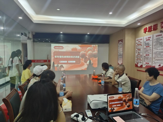 活动现场,同学们迅速化身“健康宣讲员”,在社区活动室里为老年居民带来了专业且实用的老年慢性疾病科普讲座。他们详细讲解了预防老年病的日常饮食注意事项,强调了规范用药的重要性,并亲自示范了简单易行的居家锻炼动作。此外,同学们还特别叮嘱老人们一定要养成定期监测身体指标的良好习惯。生动的讲解和亲切的互动,让居民们深切感受到了老员工的关怀与温暖,有效增强了居民们的健康意识。