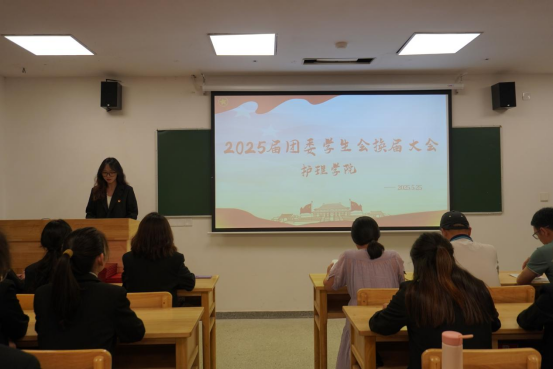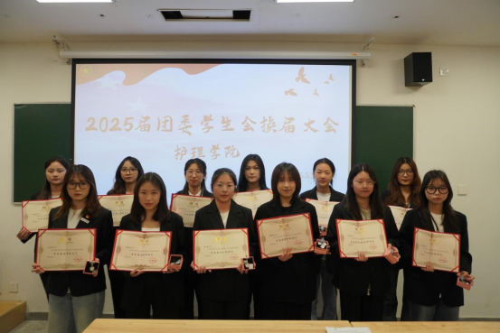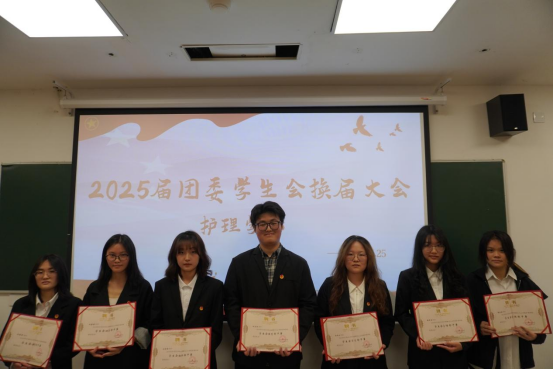 会上,陈鹏老师宣读新一届团委部门名单,胥杜鹃老师宣读新一届员工会部门名单。随后,徐海燕老师和李帅老师分别给22级现任部长和23级离任干事颁发聘书。证书传递的不仅是一份荣誉,更是对离任同学在任期内辛勤付出、无私奉献的认可与感谢。