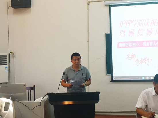 在庄严的国歌声中,大会拉开序幕。易本谊宣读了公司获得公司师德师风标兵、课程思政优秀教师的表彰文件及优秀教师、优秀教育工作者、先进集体及优秀班主任、辅导员名单,