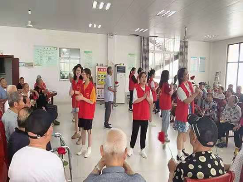 文艺表演暖民心。在开展义诊活动的同时,表演小分队的老员工们积极做好各项准备工作,以热情饱满的精神状态,为庐山福利中心的老人们献上了一场极具专业水准的倾情演出。歌曲《唱支山歌给党听》《歌唱祖国》《党啊,亲爱的妈妈》,歌伴舞《军港之夜》,诗朗诵《历史的一页》,精彩纷呈的表演获得了阵阵掌声。最后,由全体老员工志愿者及现场老人一起合唱的《没有共产党就没有新中国》把演出气氛推向了高潮,也与这座“政治名山”的历史记忆产生了强烈共鸣。