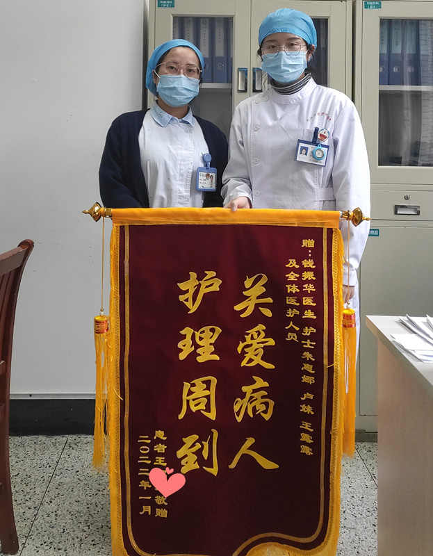 卢妹同学是护理专业2018级本科生,在校期间品学兼优,在实习单位工作勤恳,刻苦钻研,很快就能独立完成基本的护理操作,在技术条件要求较高的ICU实习。今年1月接诊了一位很年轻的患者,消化道出血进了ICU,被确诊为胰腺癌,患者除了紧张还有恐惧,甚至心里失去生的希望。在带教老师的指导下,上呼吸机、插胃管、插引流管…卢妹同学不仅用娴熟专业的技术精心护理,而且特别关照患者的情绪,每次一上班一定会去她的病床前跟她说话打气,帮助她增强战胜疾病的信心,患者由于气管插管不能说话,但每次都把卢妹的手紧紧的抓住,回应她一个微笑。经过尽心精心治疗和护理,患者病情好转,拔掉了气管插管后跟卢妹说,她得知自己的病情后,几乎觉得没什么生的希望,但是当看到医护人员对她的关心和帮助,给了她跟病魔做斗争的信心,她一定会坚持下去。患者从ICU转去普通病房后,家属特意送锦旗来感谢。