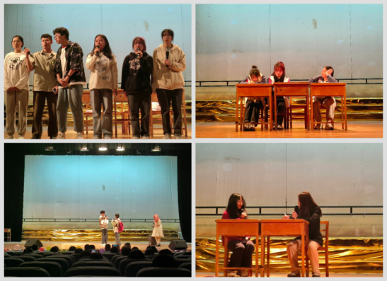 A2212班率先登场,一场《对自己说“我爱你”》的精彩演出,带给观众满满感动与力量,仿佛有一道光芒照射进了每一个自卑着的、追求着自我价值者的内心。紧接着是A2211班为我们带来的《做自己的光,见更亮的光》,演绎着从初入大学的迷茫与失意到自我闪光点的发掘发现,以一首《倔强》作为故事的结局,那股坚信自我的倔强越发熠熠生辉。A2214班的《曙光》,仿佛在祝愿着在座的各位于失意之时都能遇见自己的曙光,照亮彼时的灰暗。A2221班为我们带来《磨难与成长》,于地震磨难中见证女孩的成长,讲述着女孩与父母从矛盾争吵到温情相拥的感人至深故事,最后,A2213班为大家献上《敏感的心》,敏感的心于泥泞中忍辱负重,却因心怀光明与力量而赢得勇气与璀璨,《敏感的心》让观众悲喜交加,大家为主人公的经历落泪,却也因其美好结局倍感欢喜。精彩纷呈的演绎赢得了大家的阵阵掌声。
