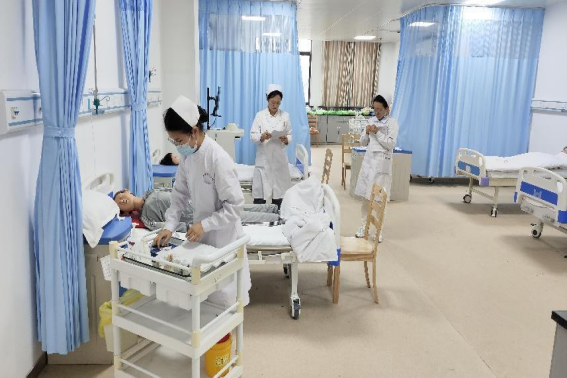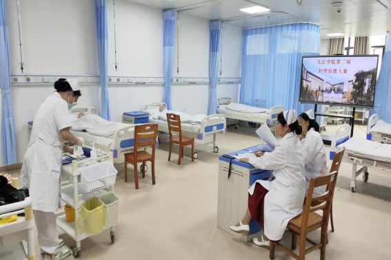 比赛中,选手们沉着冷静、操作娴熟,展示了斗志昂扬的比赛状态、展现了超强的随机应变能力。选手们有条不紊的护理操作赢得了评委老师们的一致称赞。