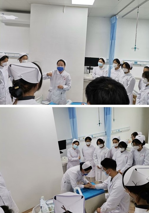 第一场公开示范课于2024年10月28日在护理实验楼304开展,由护理学基础教研室刘秀秀老师主讲,课题是《皮内、皮下注射》。刘老师以皮内、皮下注射需要注意事项的回顾引入,紧接着给员工做示范、并提醒要点,灵活应用理论与实践结合。讲解完毕组织员工按照小组进行分工合作,分别以患者和护士身份进行皮内、皮下注射训练。刘老师以娴熟的教学技艺、丰富的教学经验、扎实的课堂训练为全体老师奉献一场精彩的公开课,起到了很好的示范作用。教学过程中注重夯实基础、技能训练,员工在老师的指导下积极参与教学过程、提升动手实践能力。