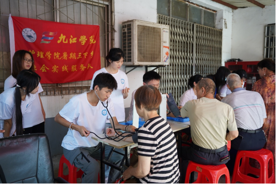 活动现场,服务队的同学们充分发挥专业优势,为居民们提供了全面的健康卫生服务。他们为居民免费测量血压、血糖,耐心解答居民们关于日常健康管理的疑问,并根据测量结果和居民的身体状况,给予个性化的饮食、运动及疾病预防建议。同时,针对夏季常见疾病,如中暑、肠道疾病等,同学们进行了详细的科普宣传,通过生动的案例和通俗易懂的讲解,向居民们传授预防方法和应对措施,提高居民的健康意识和自我防护能力。在应急救助知识教育环节,服务队采用理论讲解与实际操作相结合的方式,为居民们带来了一场别开生面的急救培训。同学们详细介绍了心肺复苏等常见急救技能的原理和操作步骤,并现场利用模拟人进行示范演示,邀请居民上台亲身体验,手把手指导居民进行操作练习,确保居民们能够正确掌握急救技能,现场学习氛围浓厚。