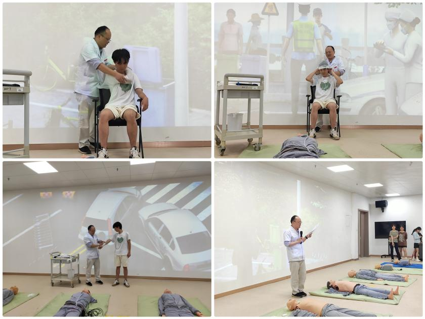 培训中,袁荣华致力于使用数字化、可视化、科学化技术进行授课,利用丰富的教学经验,生动风趣的语言激发同学们的学习热情,耐心指导,采用理论讲解和操作演示相结合的教学培训形式,讲解了心肺复苏术、止血、包扎和固定等急救操作的理论知识,并进行详细的教学演示。同学们受益匪浅,积极学习,迅速掌握了心肺复苏术、螺旋反折包扎和绞紧止血法等急救方法。