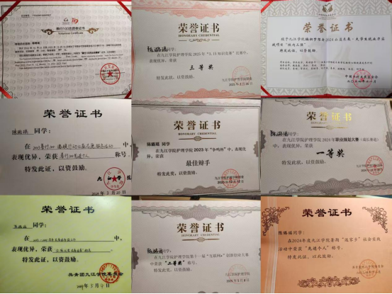 面对这些荣誉,陈璐瑶十分谦逊:“这些都是过去的经历,每一份荣誉都是对我某一阶段努力的肯定,但更重要的是它们教会我的东西——做公益让我懂得‘奉献的快乐’,参加辩论赛让我学会‘理性思考’,职业规划大赛让我明确‘未来方向’,而这次党史知识竞赛,则让我找到了‘思想的灯塔’。”