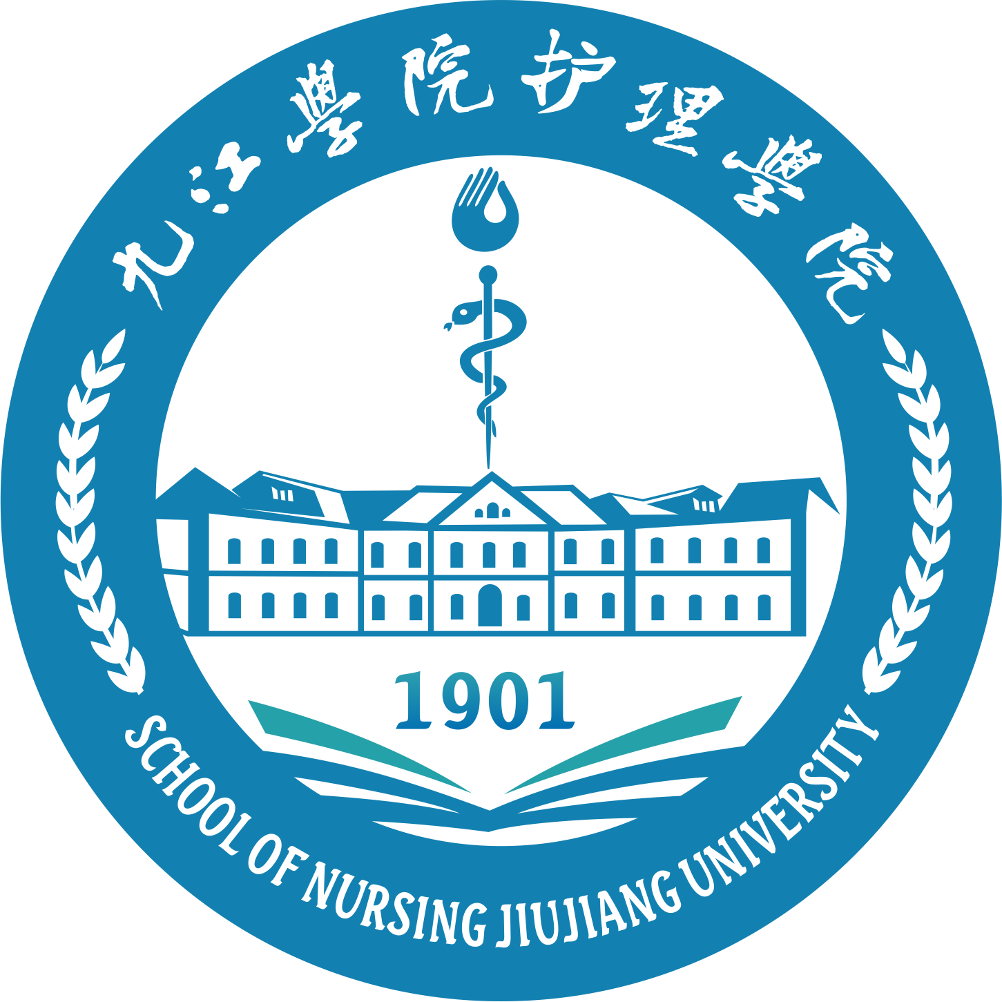 5.蛇杖:医学标志,与护士之手构成燃烧的蜡烛,和下方的但福德楼组成一盏油灯,寓意提灯育人的护理特色。